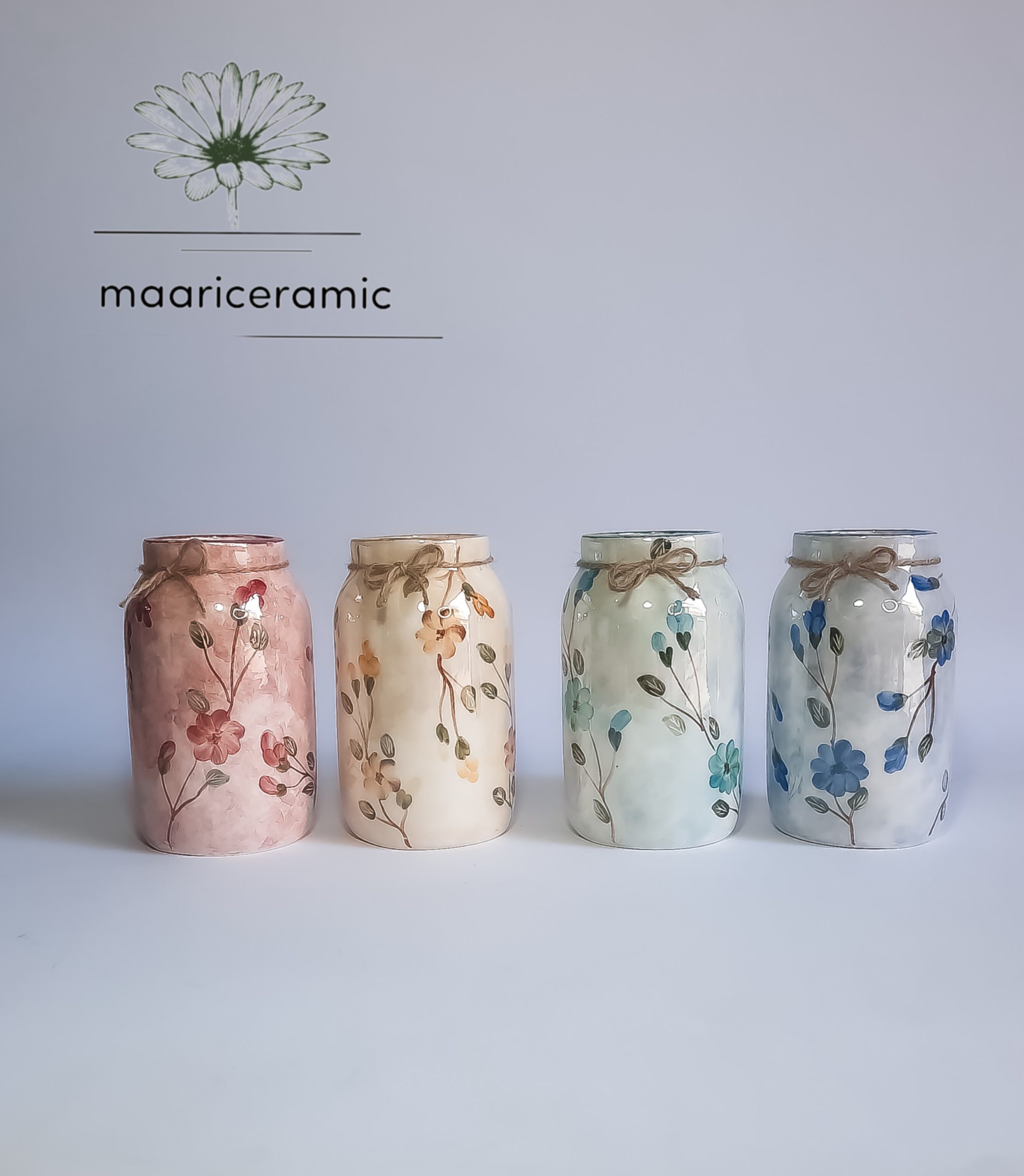 پک اقتصادی گلدان سرامیکی رنگ کرم