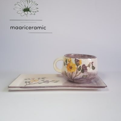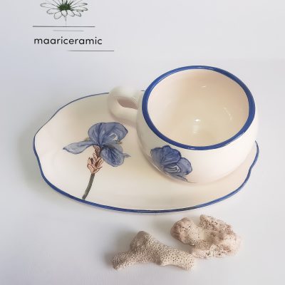 نام : ست لته زنبق طرح : زنبق لعاب : ساده طول بشقاب لته 22 سانتی متر ارتفاع فنجان 7 سانتی متر، طول دهانه 9 سانتی متر