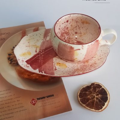 نام : ست لته خوری طرح خیال طرح : خیال رنگ : قرمز لعاب : ساده طول بشقاب لته 22 سانتی متر ارتفاع فنجان 7 سانتی متر، طول دهانه 9 سانتی متر