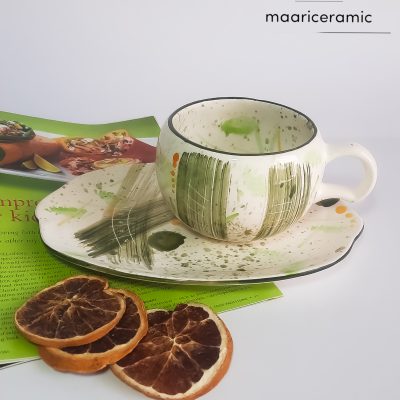 ست لته خوری سرامیکی طرح خیال با رنگ سبز با لعاب ساده، یک هدیه مناسب و دست ساز برای خاص پسندها، همچنین مناسب برای انواع نوشیدنی گرم و سرد. در مواجه با سرما و گرما هیچ آسیبی نخواهد دید و در برابر حرارت مقاوم است. این ست، فنجان لته و بشقاب لته را شامل میشود که به صورت ست و تک برای شما دوستداران هنر، قابل استفاده خواهد بود.