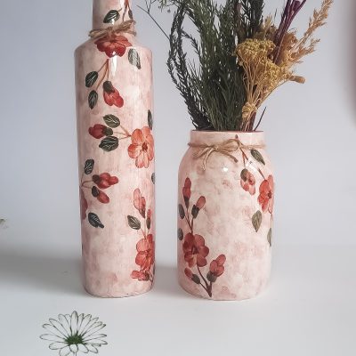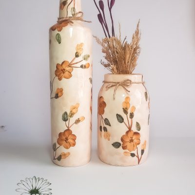 در این پک اقتصادی گلدان سرامیکی، با طرح بهشت، رنگ کرم و لعاب صدفی، دو مدل بطری سایز 1 و گلدان ساده را در کنار هم قرار دادیم تا اگر در انتخاب مدل گلدان مورد نظر خود به مشکل برخوردید، با قیمتی اقتصادی تر بتوانید هر دو مدل را تهیه کنید.