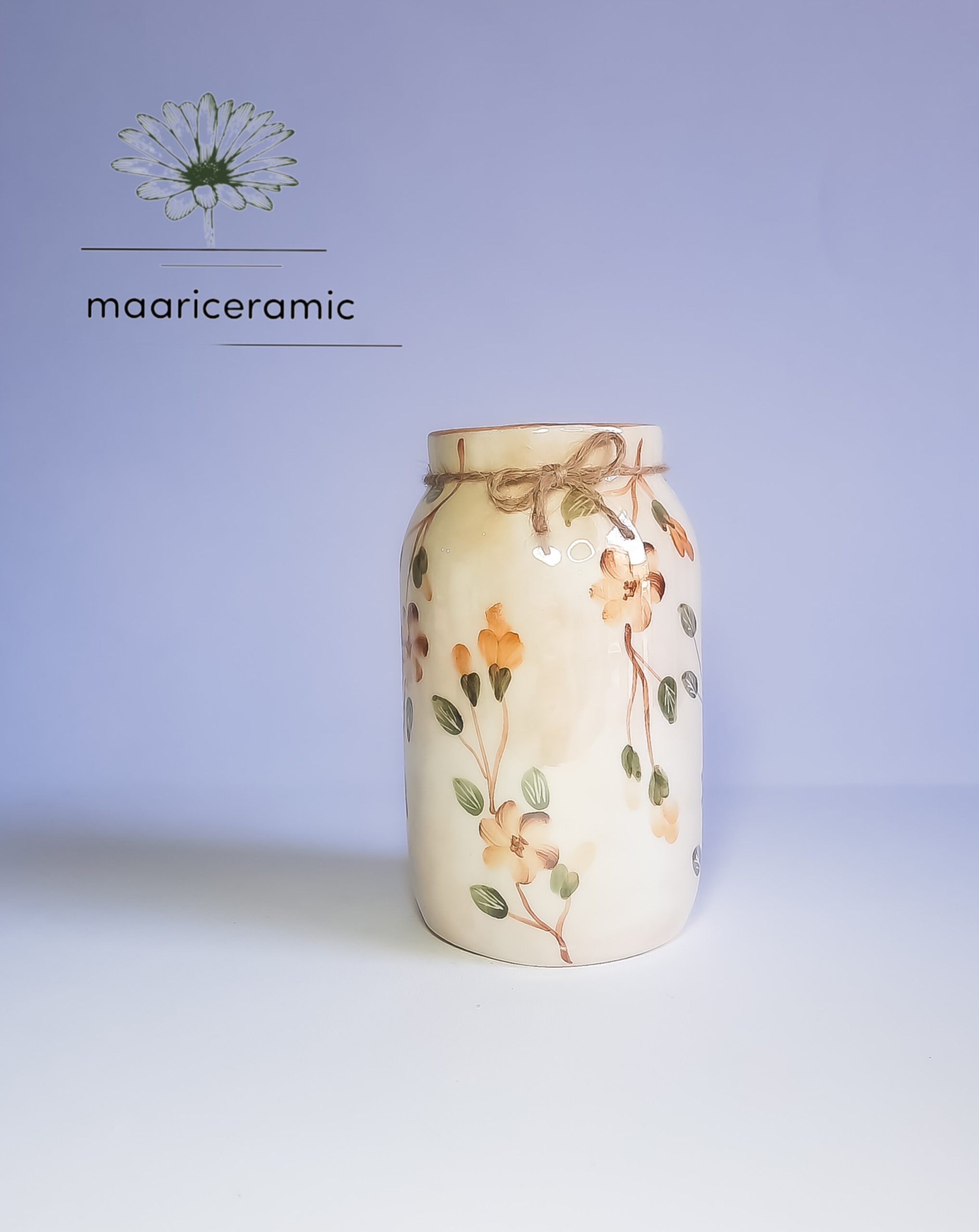 گلدان سرامیکی ساده، طرح بهشت با لعاب صدفی